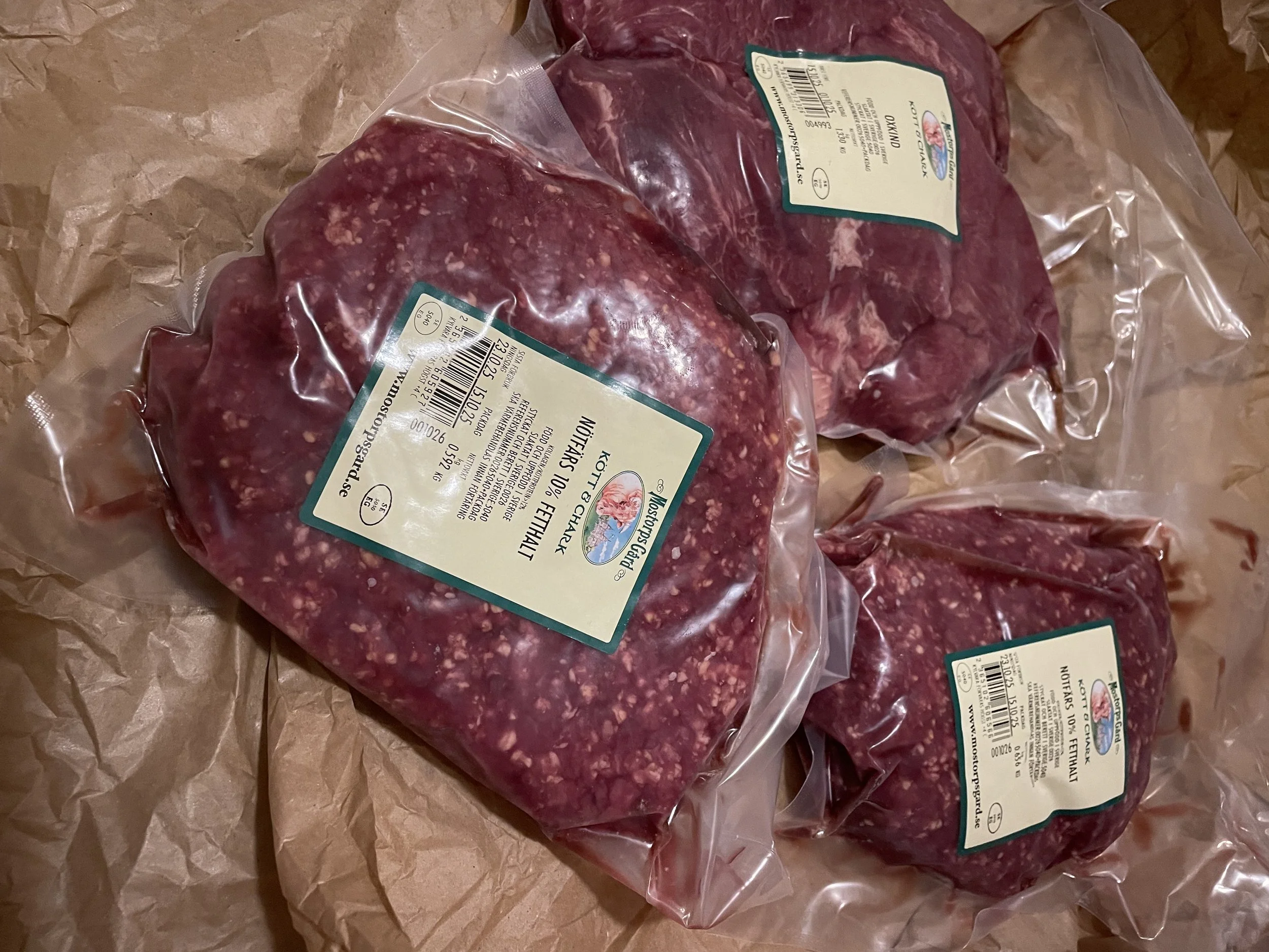 Köttlåda Rösarp Lyx Köttlådan består av 1/6 ungtjur och väger ca 30 kg. Slakt, hängmörning och styckning på Mostorps gård. Ekologisk djurhållning. Pris: 195 kr/kg inkl. moms Boka genom mejl eller telefon. Leverans under hösten 2026 (ev. våren 2026).